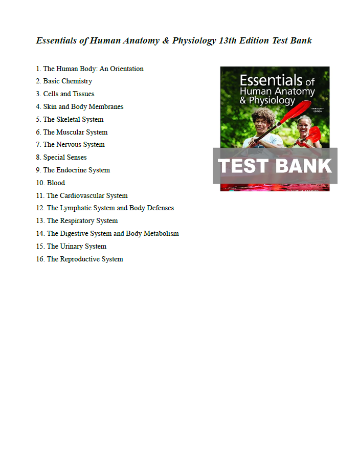 Essentials of Human Anatomy & Physiology 13th Edition Marieb TEST BANK